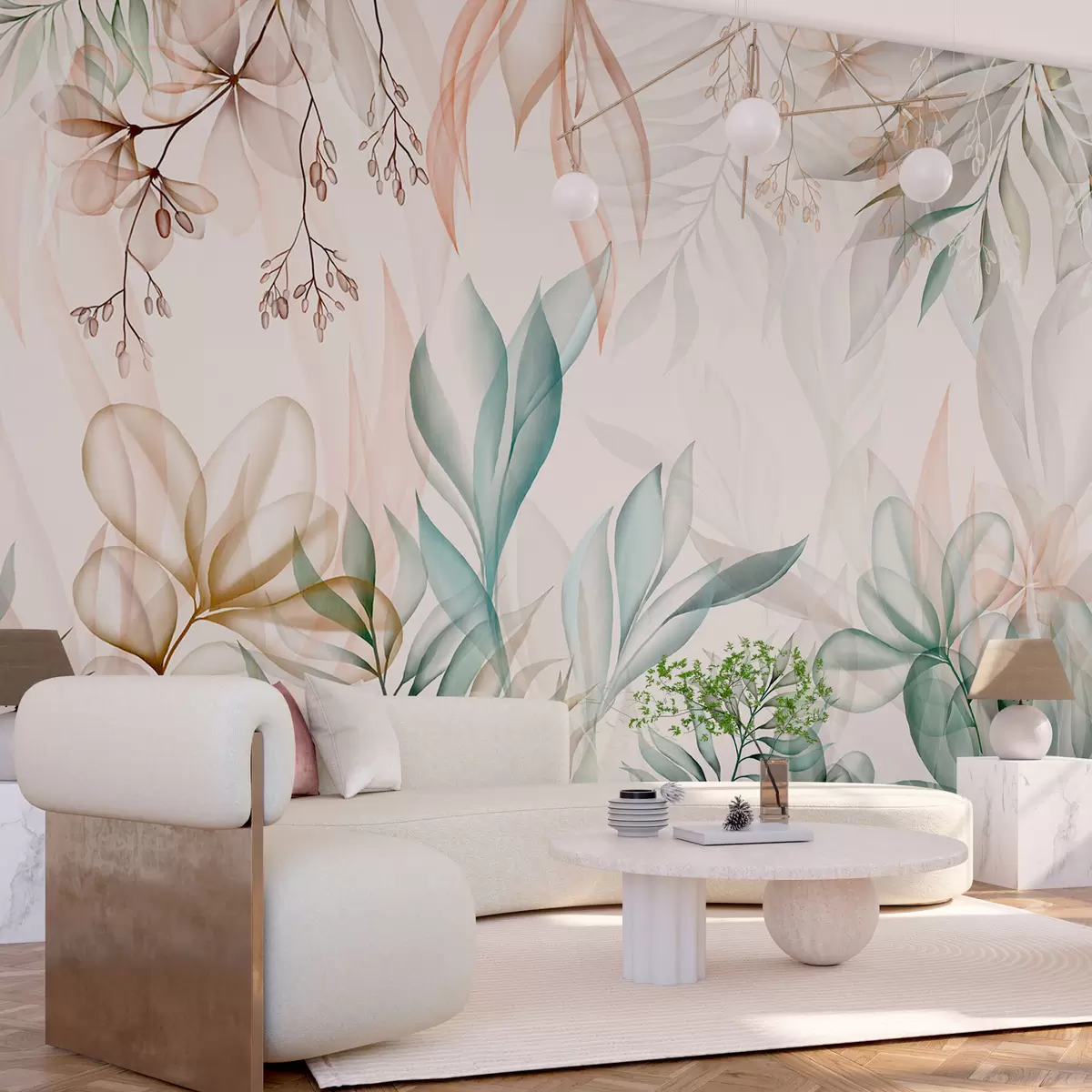 Wall murals Delicate tropical foliage in pastel colours Nr. w02316