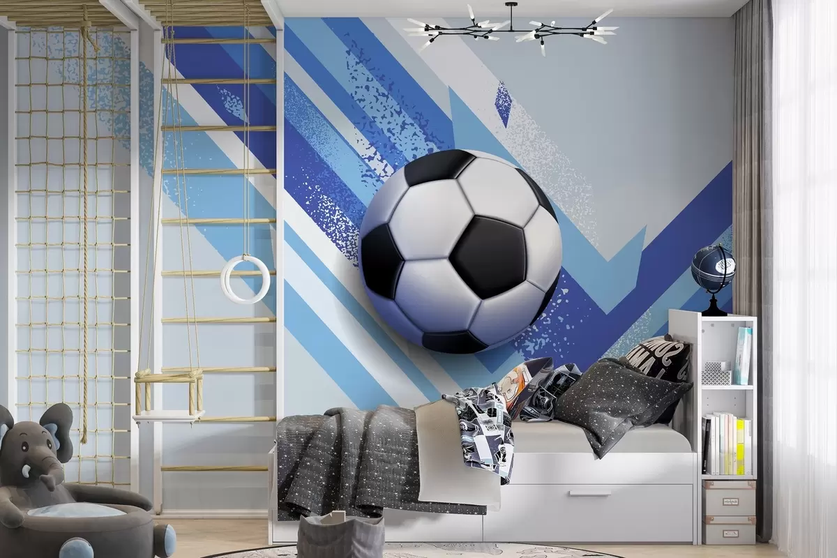 Wall murals soccer ball on dynamic abstract background in blue colors Nr. w02347