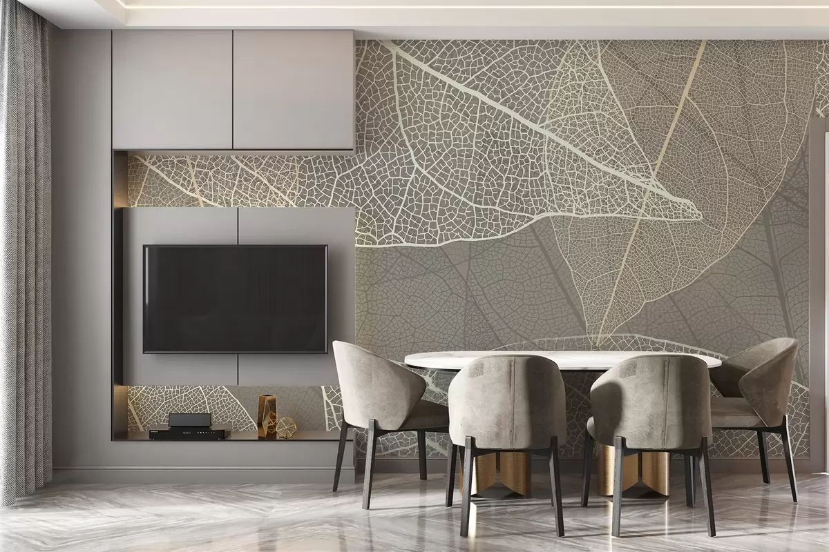 wall murals close-up of leaves with veins in warm gray tones w02520v2