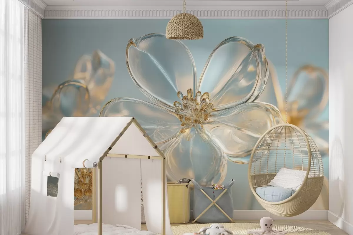 Wall murals large glass-style flowers in blue tones Nr. w02521