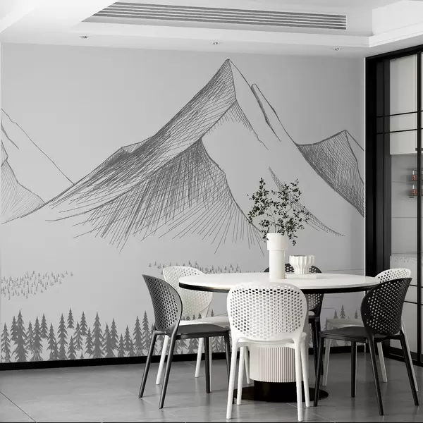 Wall murals Mountains and forest, drawn in pencil Nr. w02536