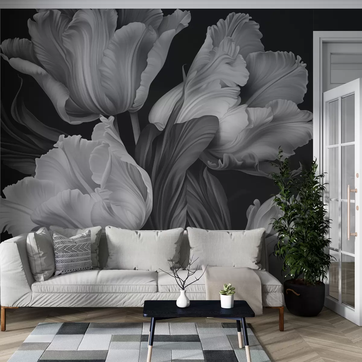 Wall murals Black and white tulips in photorealistic style Nr. w02557