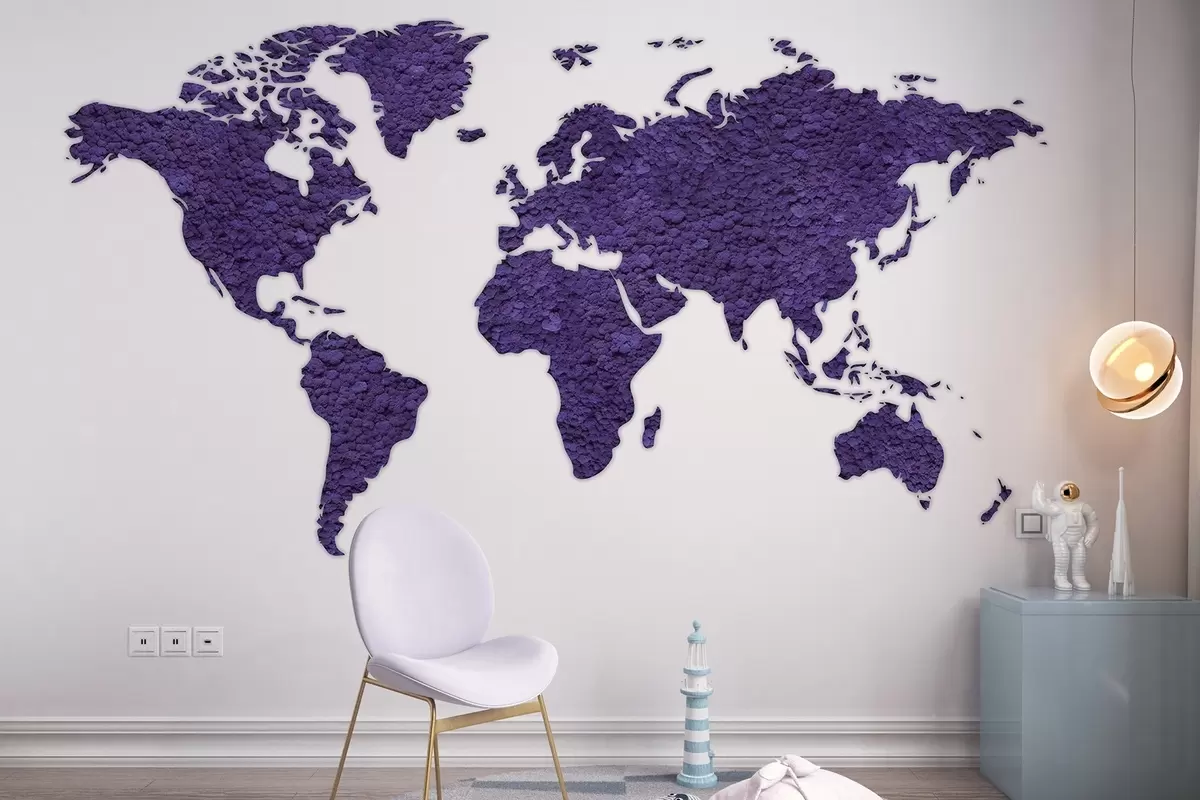 Wall murals World map with moss, nature, purple color palette Nr. w02657v3