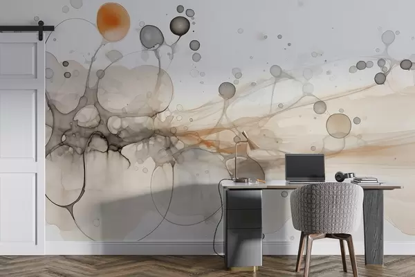 Wall murals Abstraction, minimalism, ink art, fluid, beige and grey colors Nr. w02750