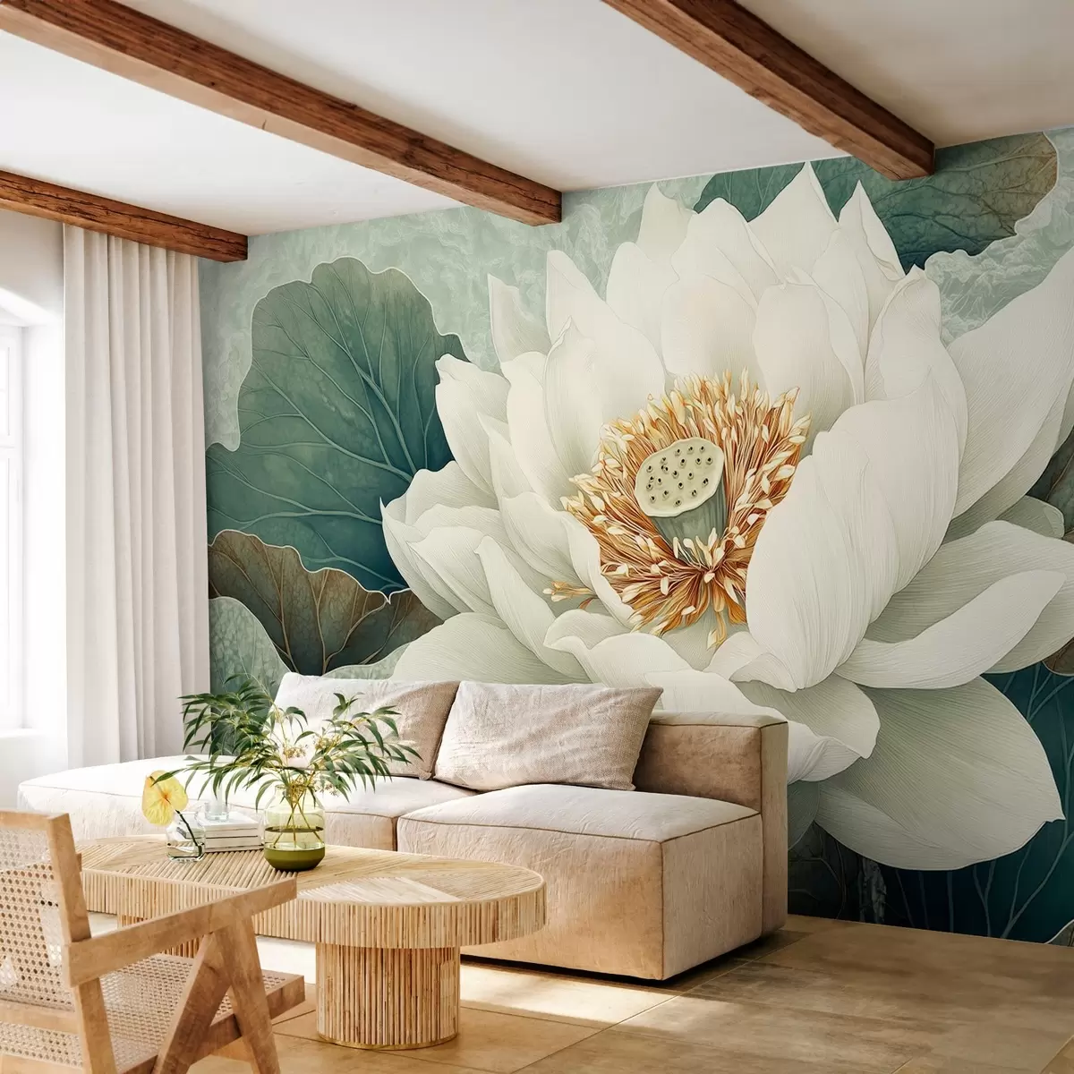 Wall murals Large water lily against a background of leaves Nr. w02905