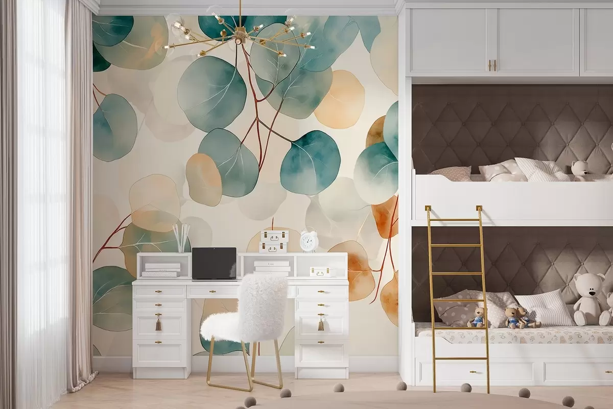 Wall murals Watercolor style eucalyptus drawing, soft pastel colors, floral Nr. w02938