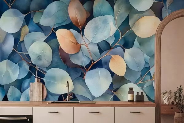 Wall murals Beautiful eucalyptus leaves, floral pattern, watercolor style drawing Nr. w02939