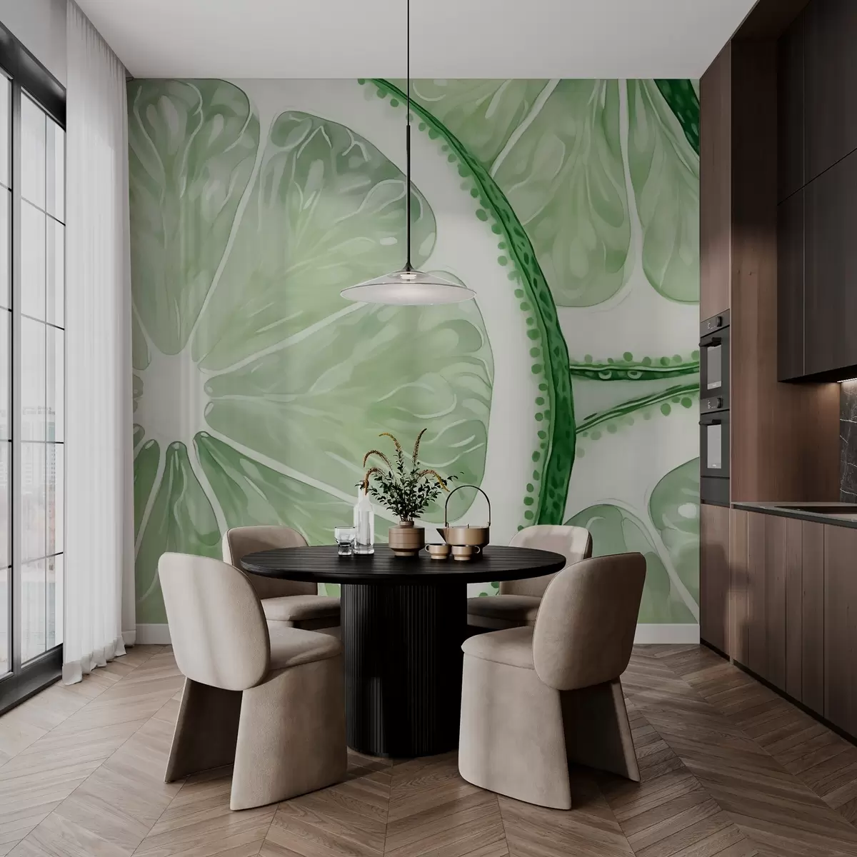 Wall murals Citrus circles imitation watercolor green shade Nr. w03026