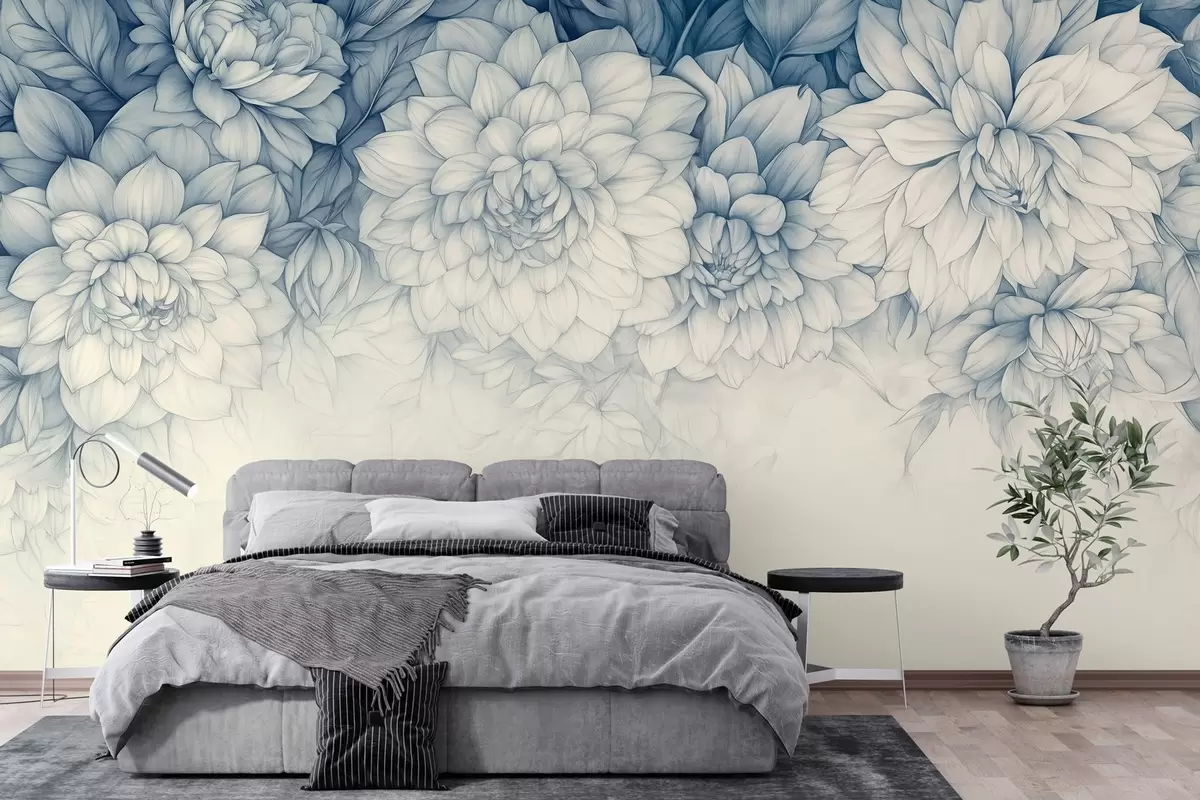 Wall murals lush monochrome chrysanthemums hanging from the top Nr. w03110