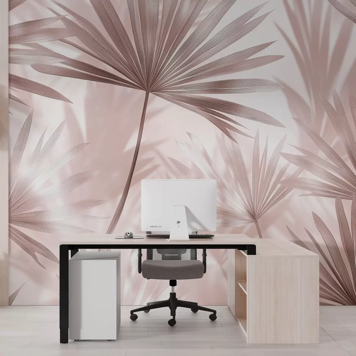 Wall murals Palm leaves, floral pattern, minimalism, tropical, beige colors Nr. w03152v3