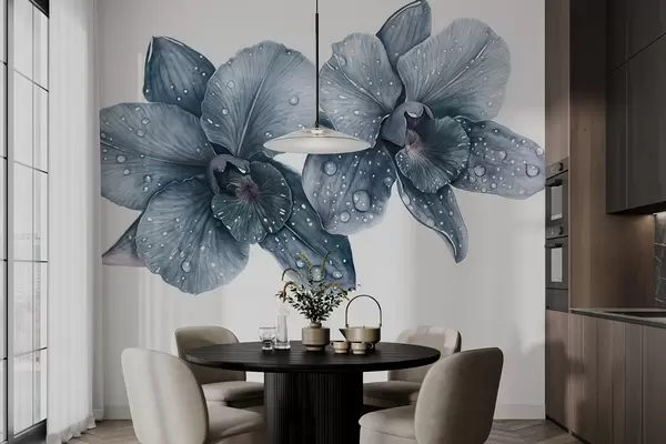 Wall murals Beautiful orchid flowers, watercolor style drawing, blue colors Nr. w03164v2
