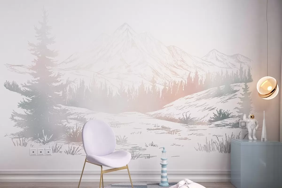 Wall murals Mountains landscape with pine trees, forest, nature, colourful Nr. w03344v4