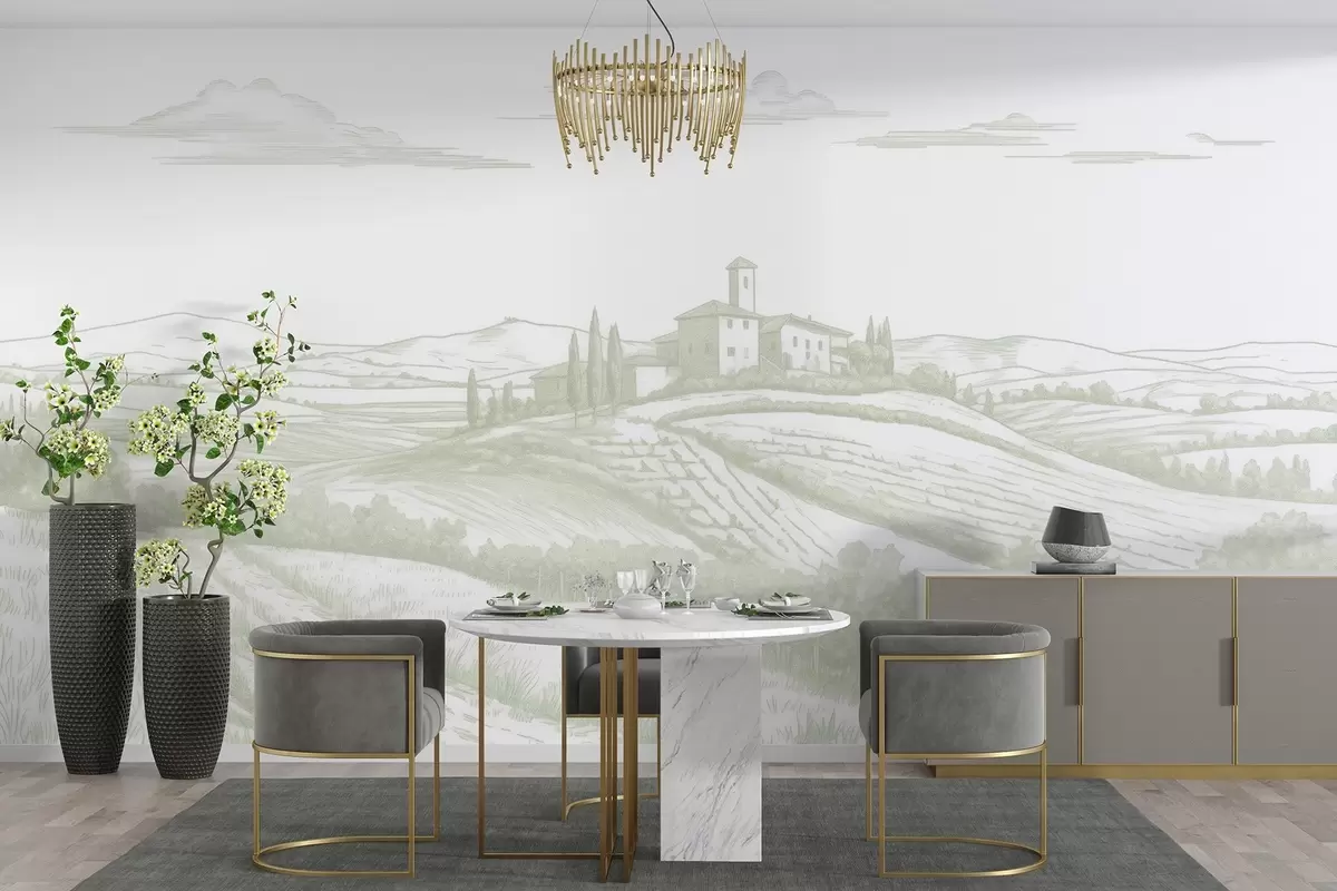 Wall murals Tuscany landscapes, Italy, vineyards, nature, old castle, green colors Nr. w03349v2