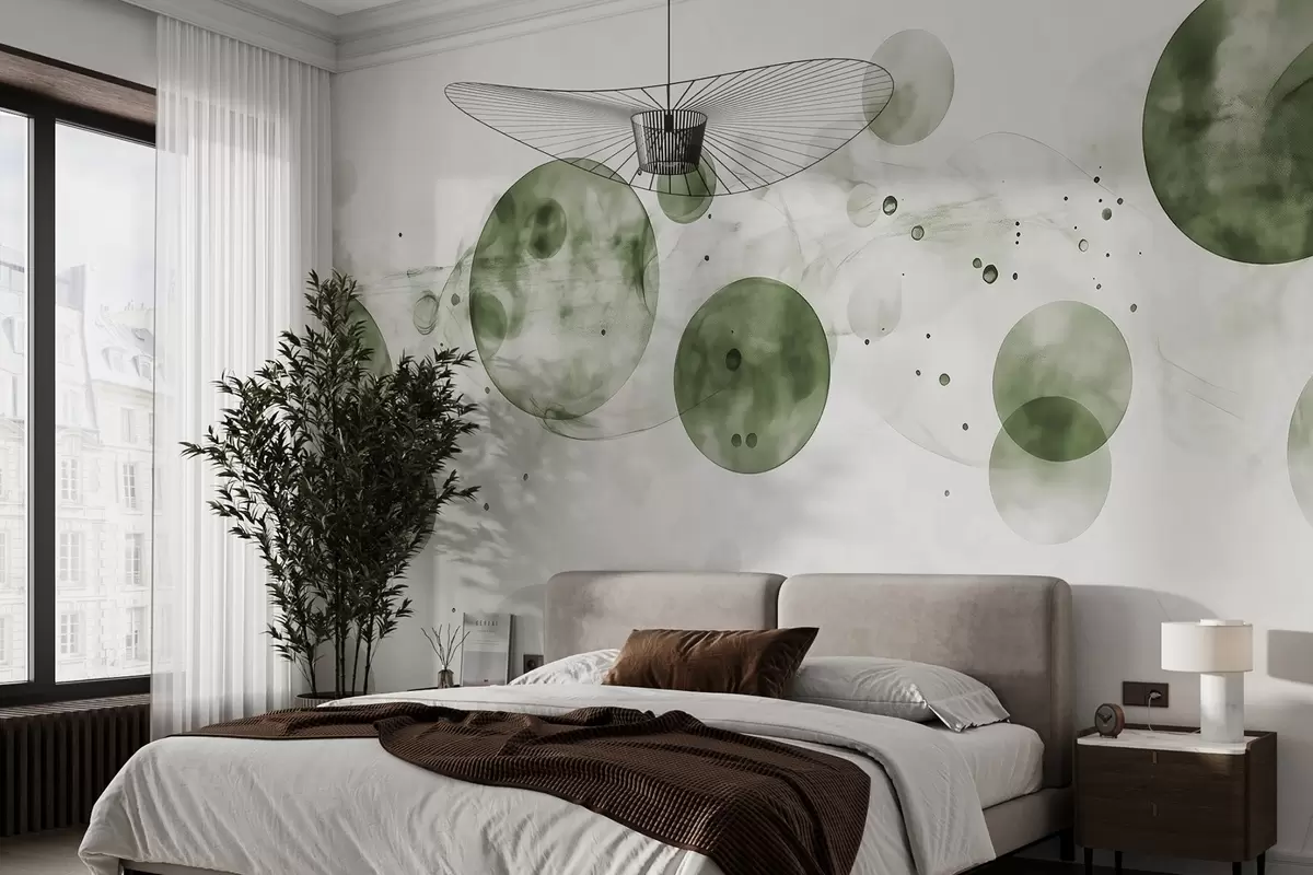 Wall murals Watercolor style circles, abstraction, ethereal, fluid art, green colors Nr. w03405v1
