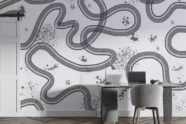 Wall murals Line art drawing, paint splatters, minimalism, grey color Nr. w03408v2
