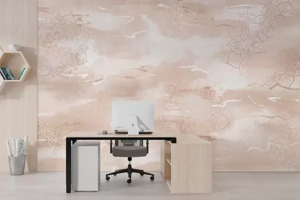 Wall murals Mandalas on the pastel background, vivid brush strokes, beige colors Nr. w03409