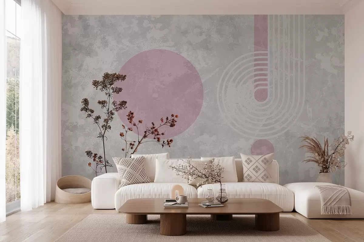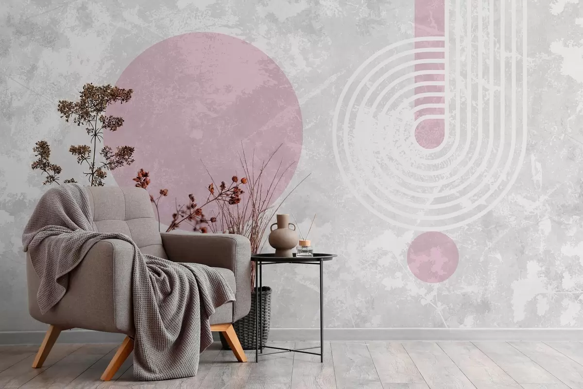 Wall murals grunge modern geometry with dried flowers Nr. w03459