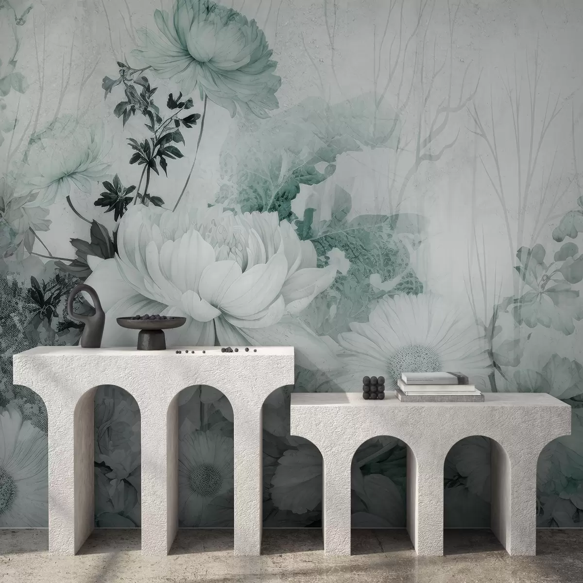 Wall murals Vintage flowers on an old cracked wall Nr. w03654v2