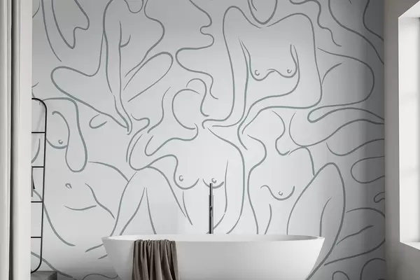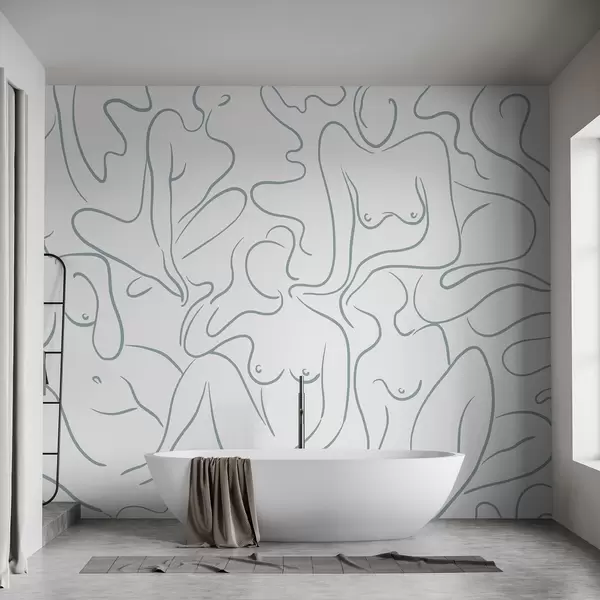 Wall murals Line drawing anatomical silhouettes, abstraction, blue color Nr. w03755v1