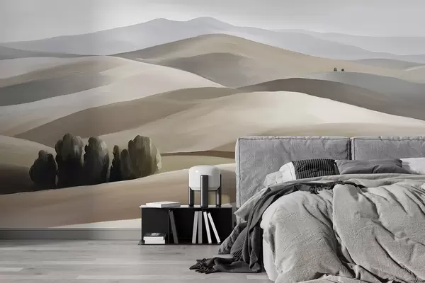 Wall murals Landscapes with trees, Tuscany, beige and grey colors, oil style Nr. w03880v1