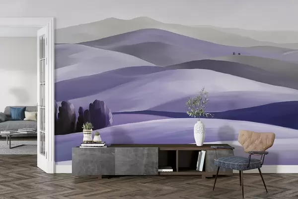 Wall murals Landscapes with trees, Tuscany, purple colors, oil style Nr. w03880v3