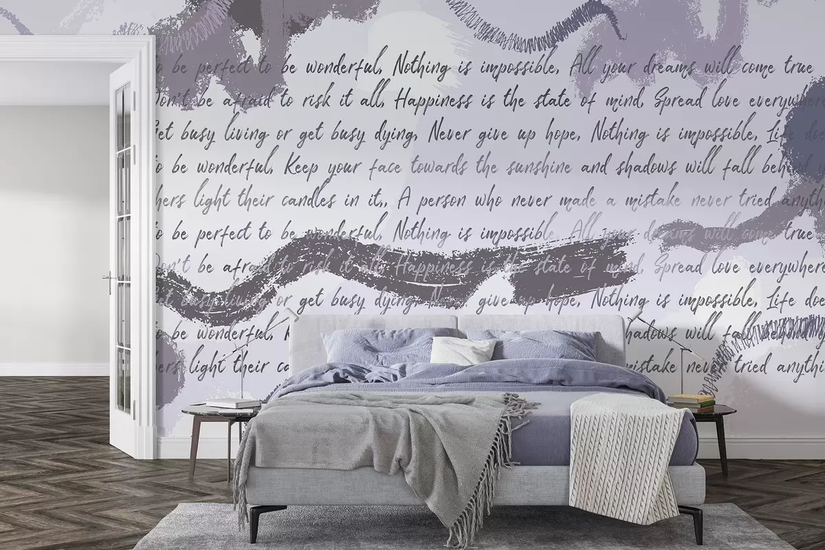 Wall murals Design with inspirational quotes, abstraction, purple colors Nr. w03909v2