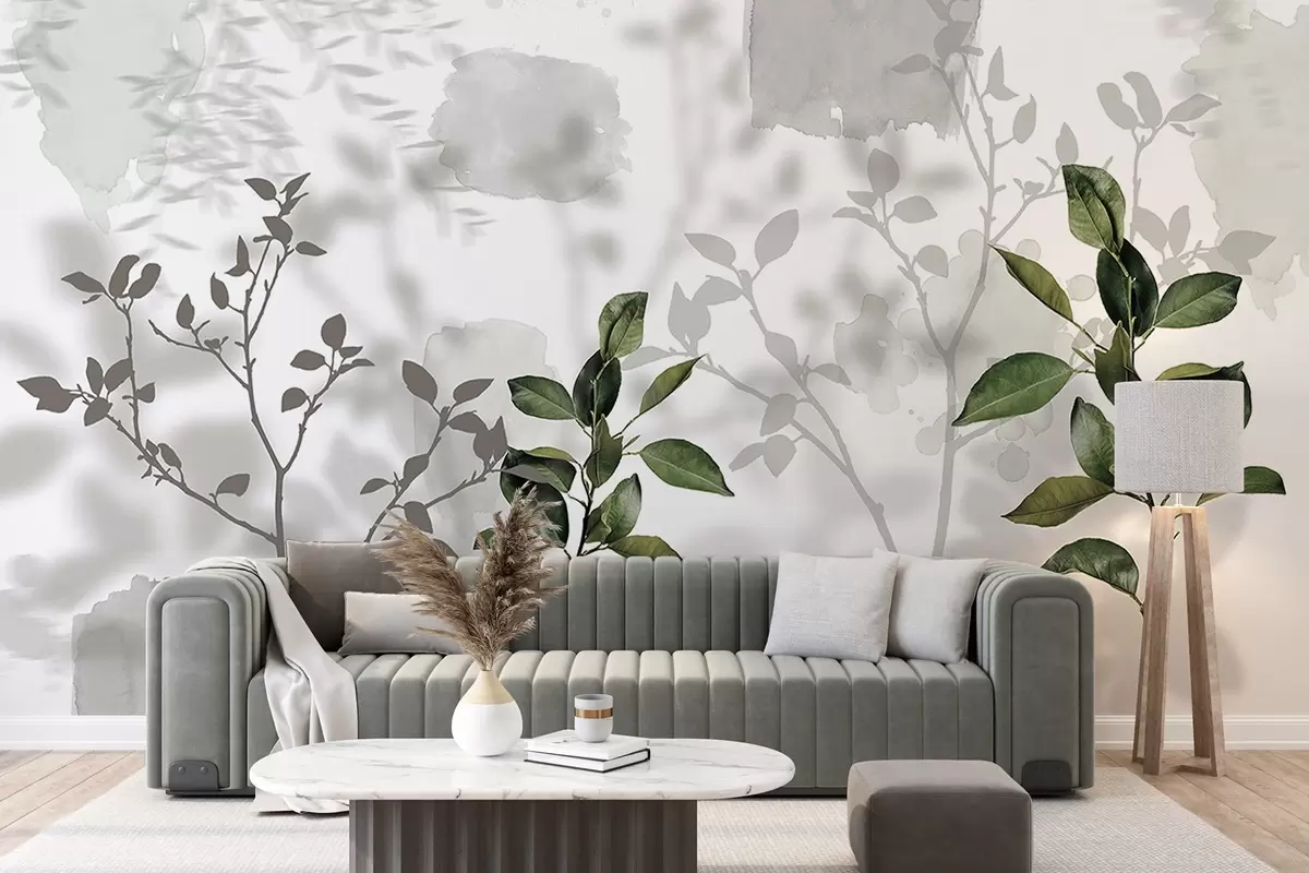 Wall murals Lemon tree leaves, tree branches shadows, nature, watercolor, green Nr. w03910v1