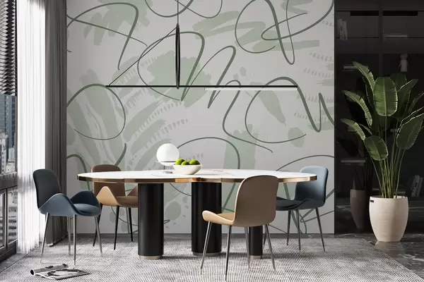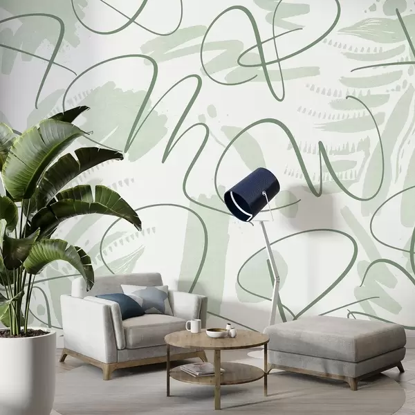 Wall murals Calligraphic abstraction with letters, brush strokes, green color Nr. w03913v3