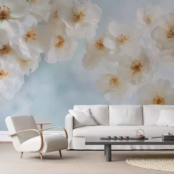 Wall murals Delicate large flowers on a light blue background Nr. w03931v1