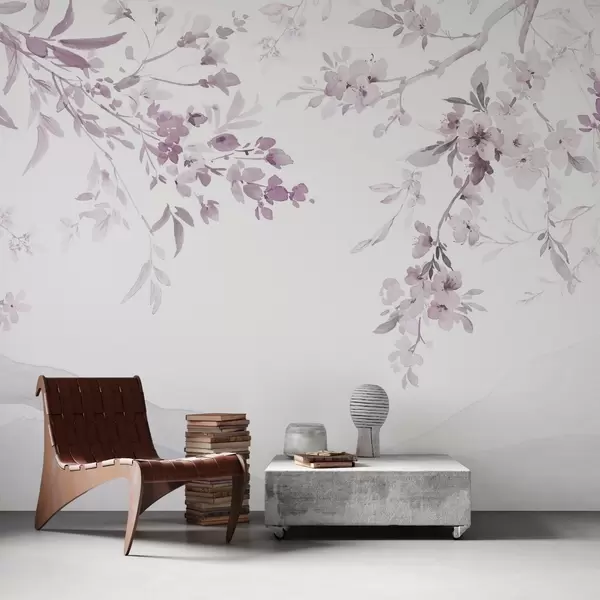 Wall murals Flowering branches, imitation of watercolor, purple-pink shades Nr. w03935v1