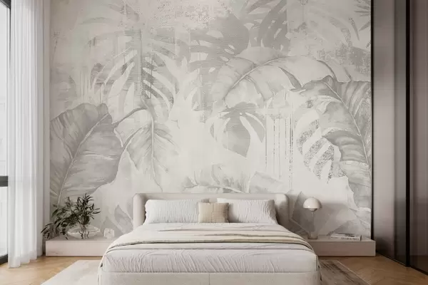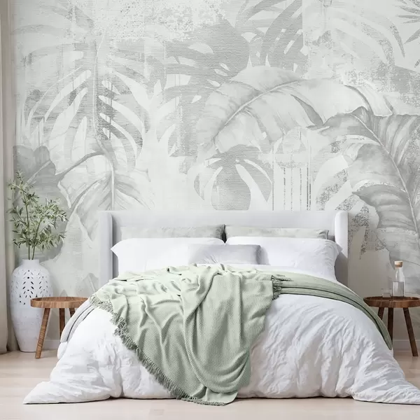Wall murals Tropical leaves in grunge style, monochrome shades Nr. w03956v1