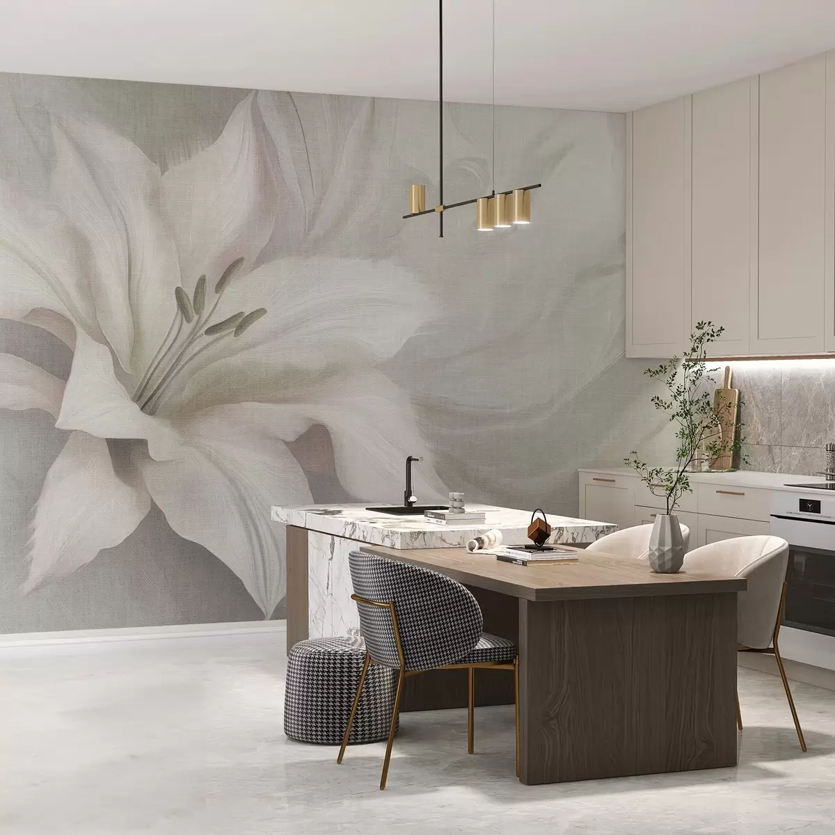 Wall murals Lily flower fluid abstraction, floral, grey colors Nr. w04006v2