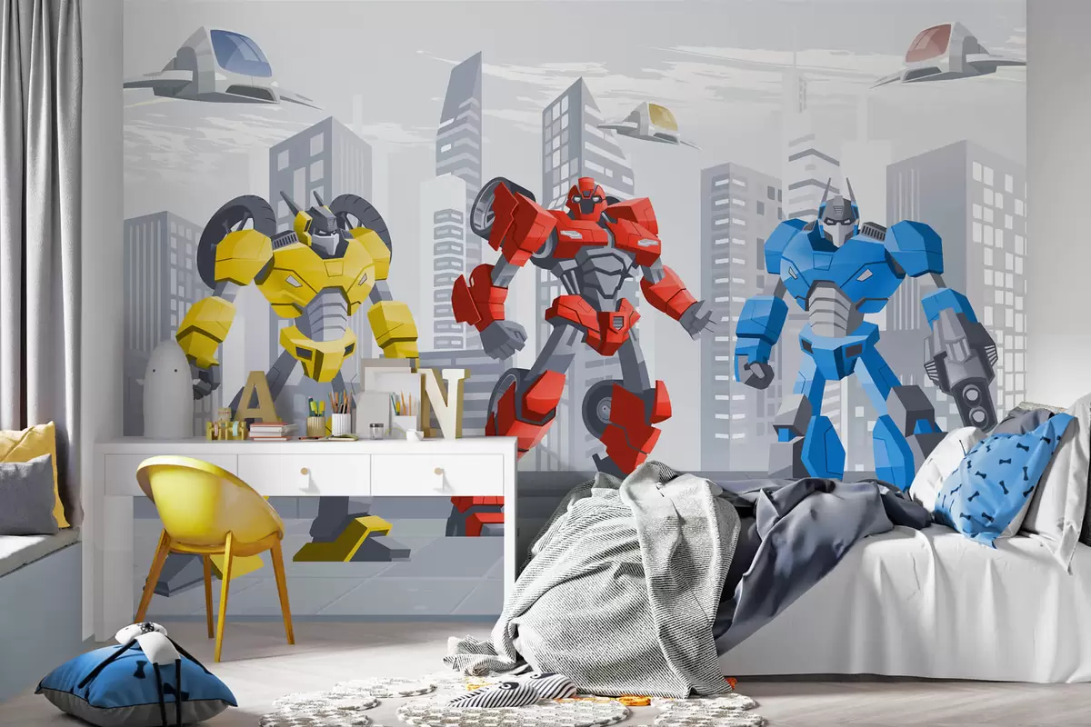 Wall murals Transformer robots against the backdrop of a monochrome city Nr. w04012