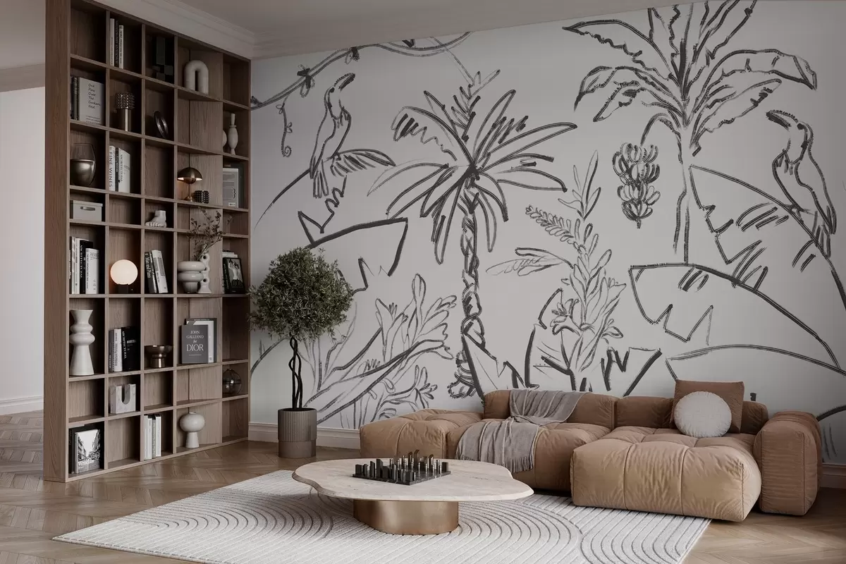 Wall murals Tropical line drawing, bananas, palm trees, outline graphics Nr. w04020