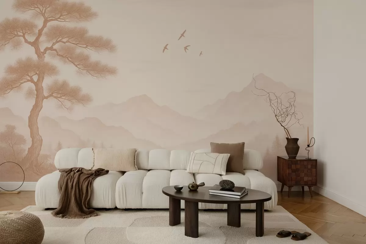 Wall murals panorama of hills with a large tree in mocha shades Nr. w04033v1