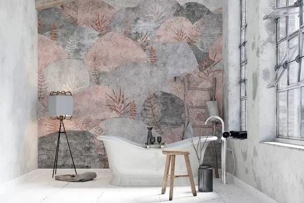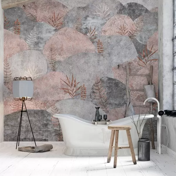 Wall murals Stones with plants, fern, nordic, rustic style, grey and pink colors Nr. w04064v1