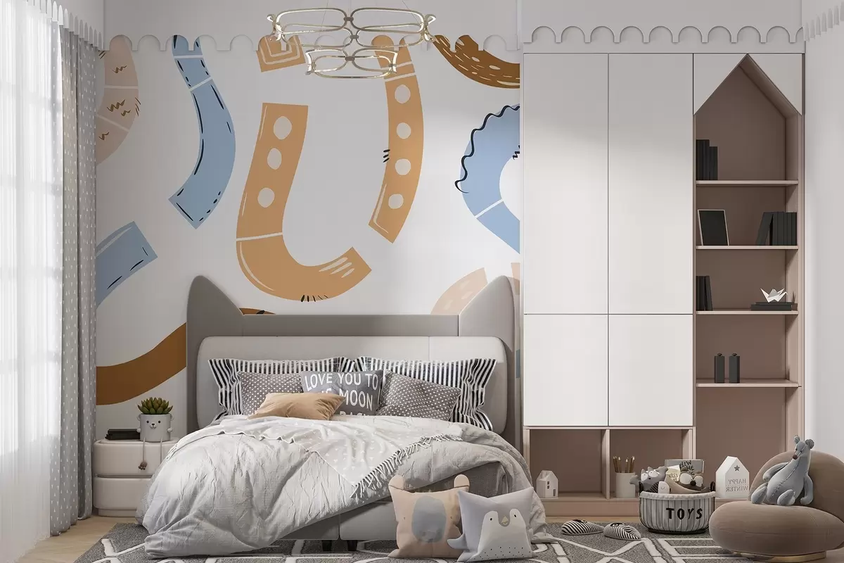 Wall murals Abstract drawings, juvenile, doodles, brown, blue, pink Nr. w04066