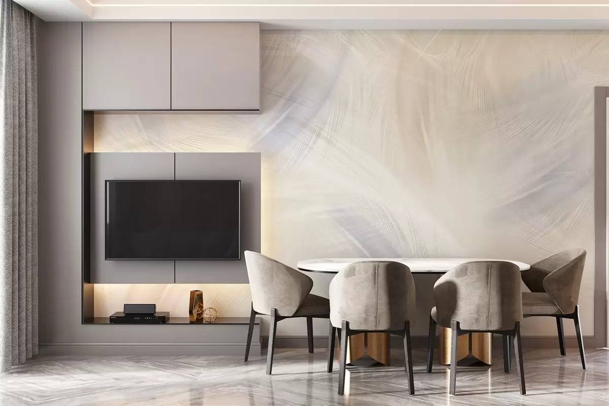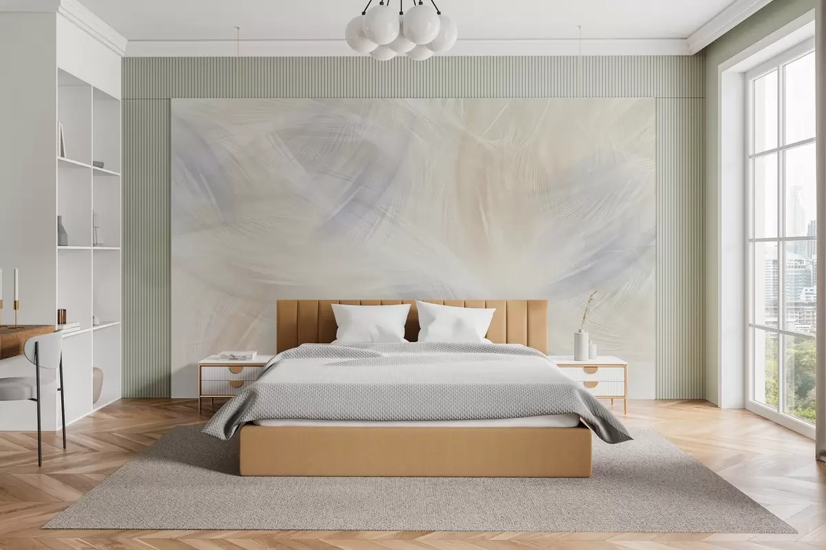 Wall murals airy feathers in shades of blue and beige Nr. w04071v2