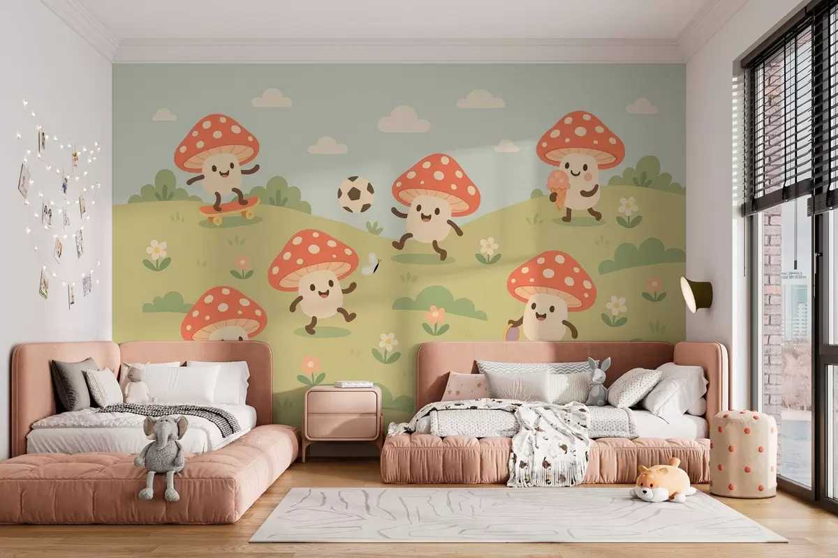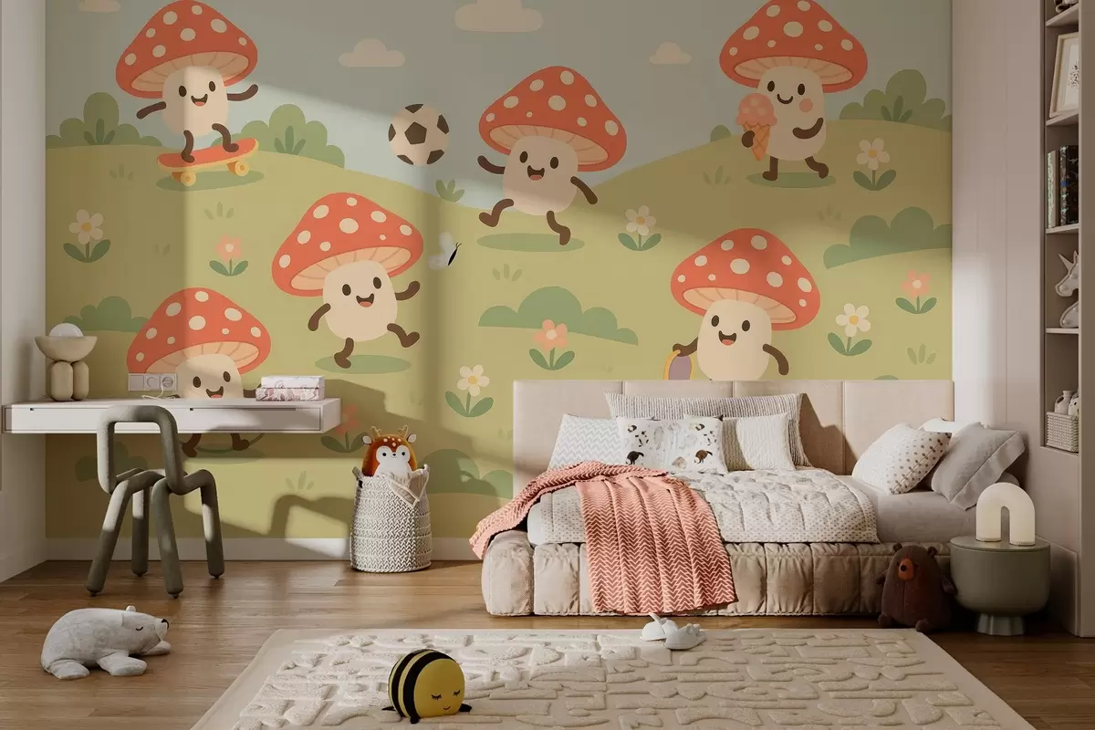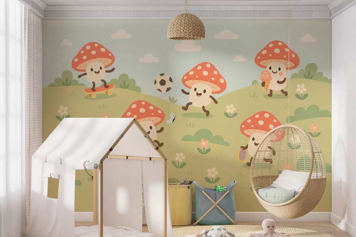 Wall murals cheerful mushrooms fly agaric Nr. w04140