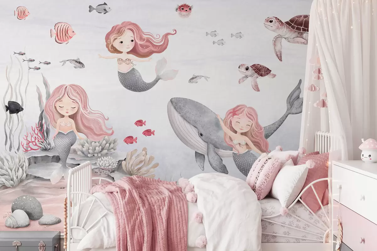 Wall murals Underwater world with mermaids and fishes Nr. w04166v1
