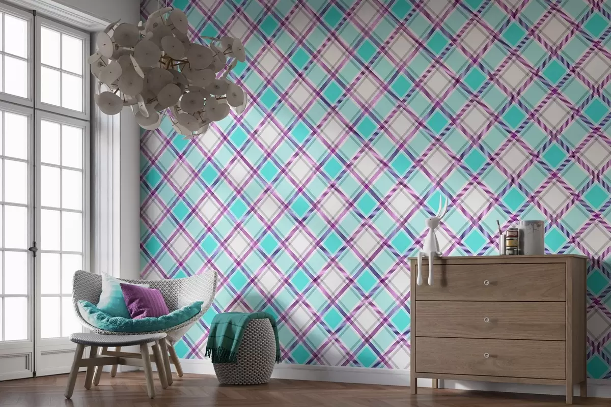 Wall murals checkered pattern in blue tones Nr. w04167