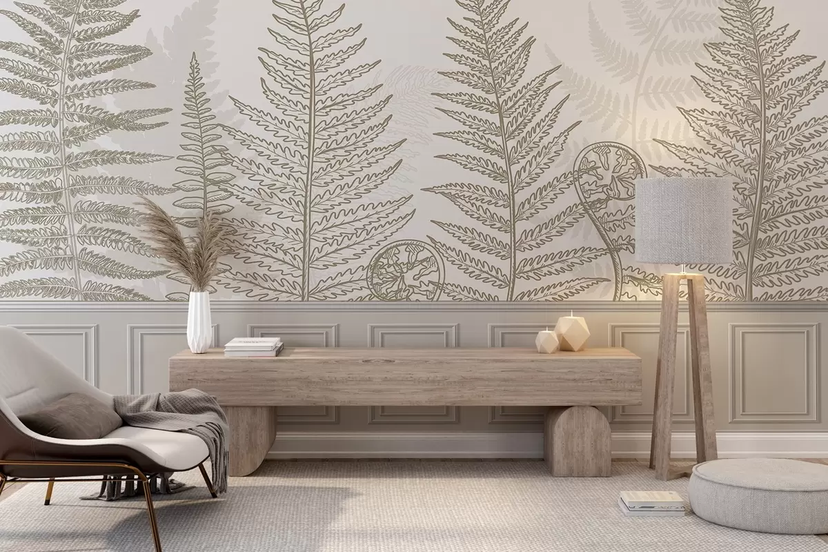 Wall murals leaves, plants, fern, light, botanical, graphic Nr. w04239v2