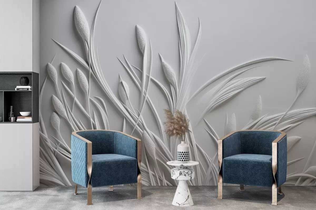 Wall murals Bas-relief with delicate leaves and pampas Nr. w04247