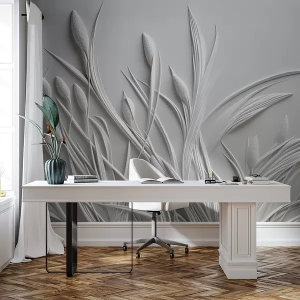 wall murals Bas-relief with delicate leaves and pampas w04247