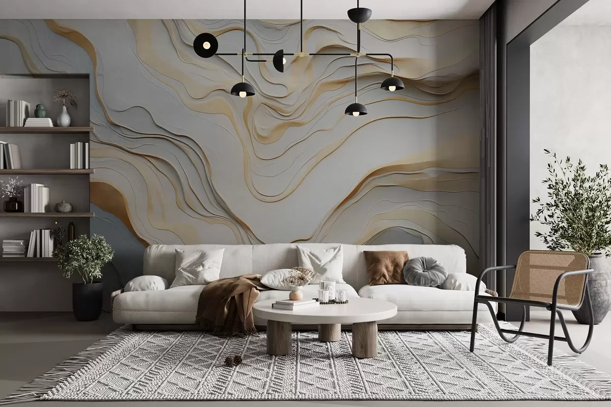 Wall murals layers, waves, abstraction, beige, grey, smoothness, modern Nr. w04255
