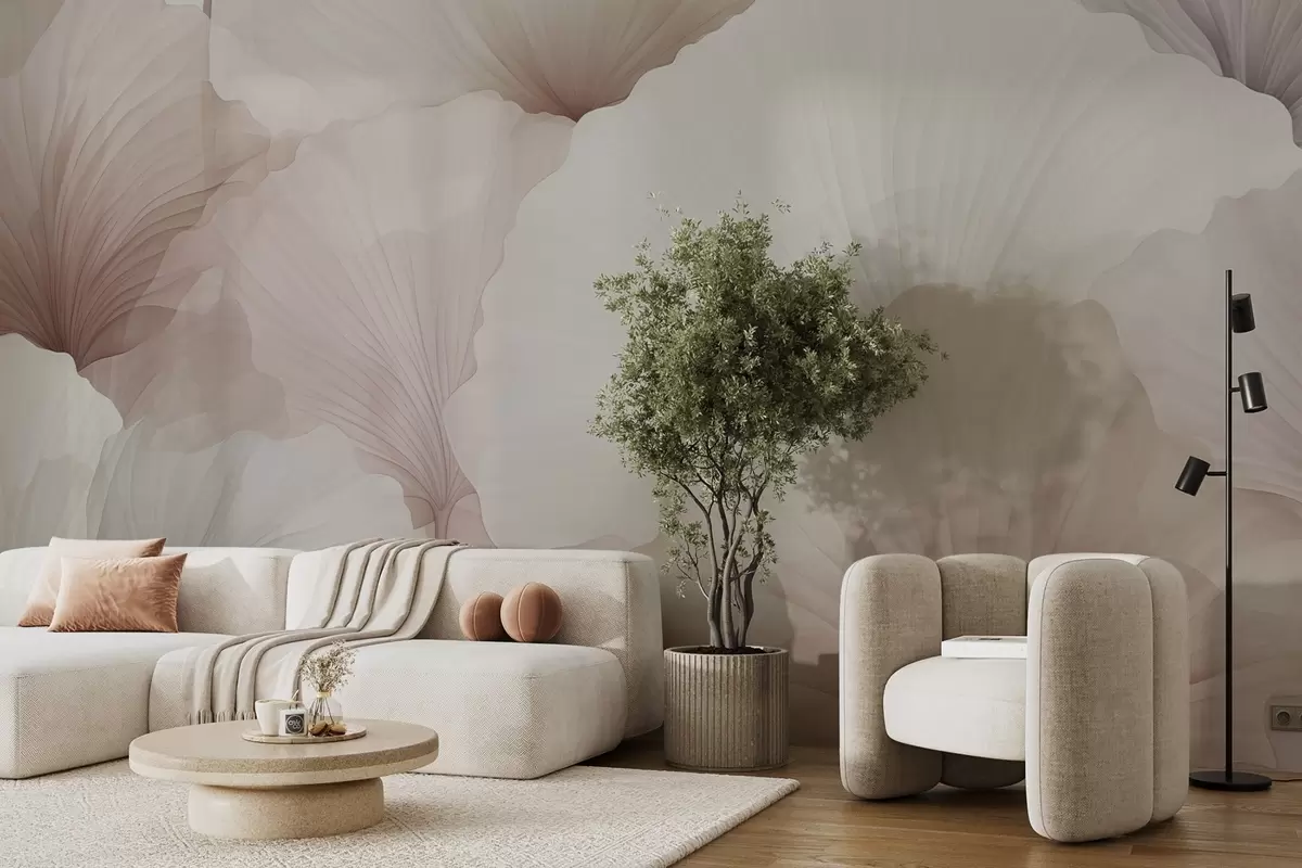 Wall murals flowers, petals, cream, grey, softness, calm Nr. w04256v1