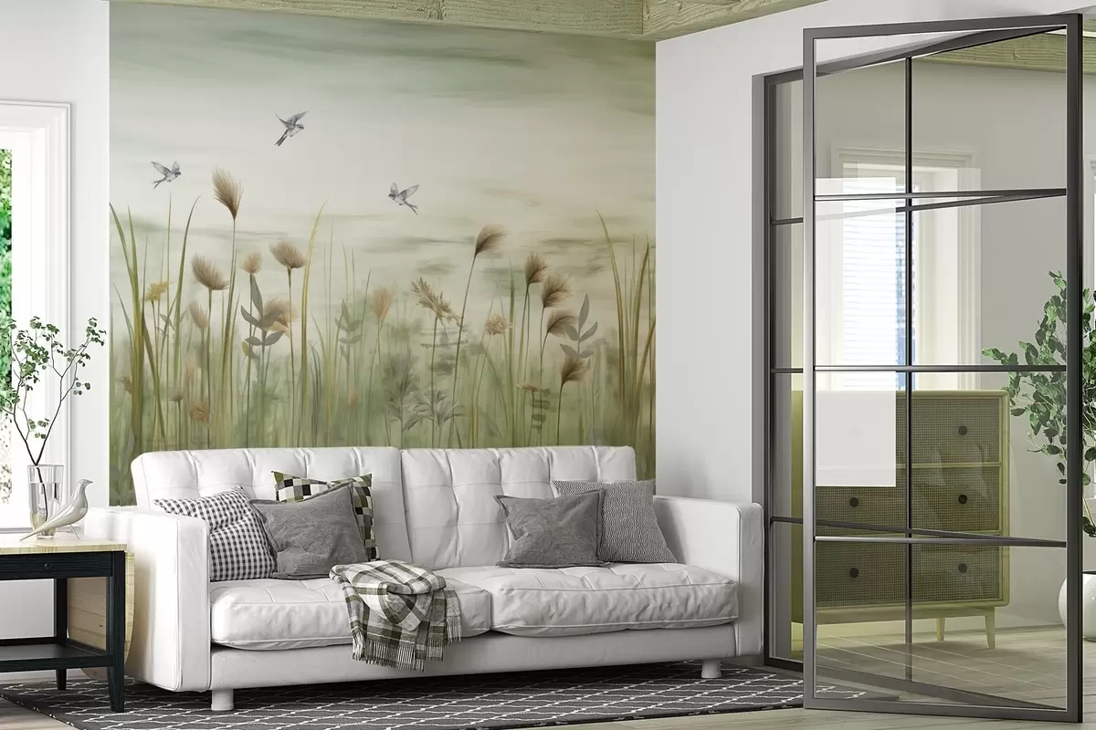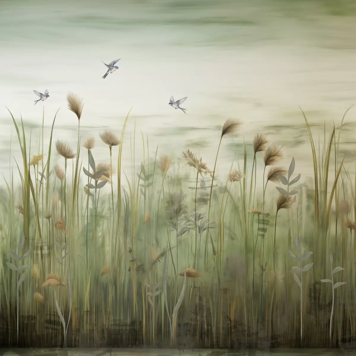 Wall murals Grass landscape with swallows against soft sky Nr. w04258v1