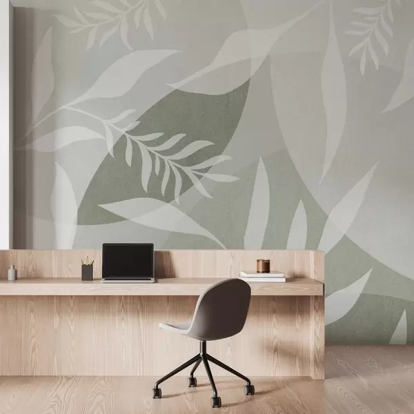 Wall murals Silhouettes of twigs on a background of abstract circles, shades of green Nr. w04270v2