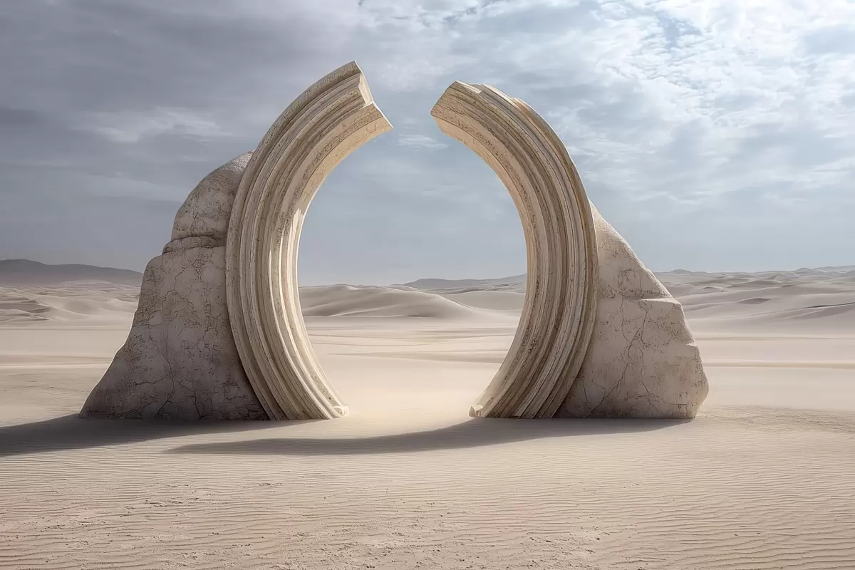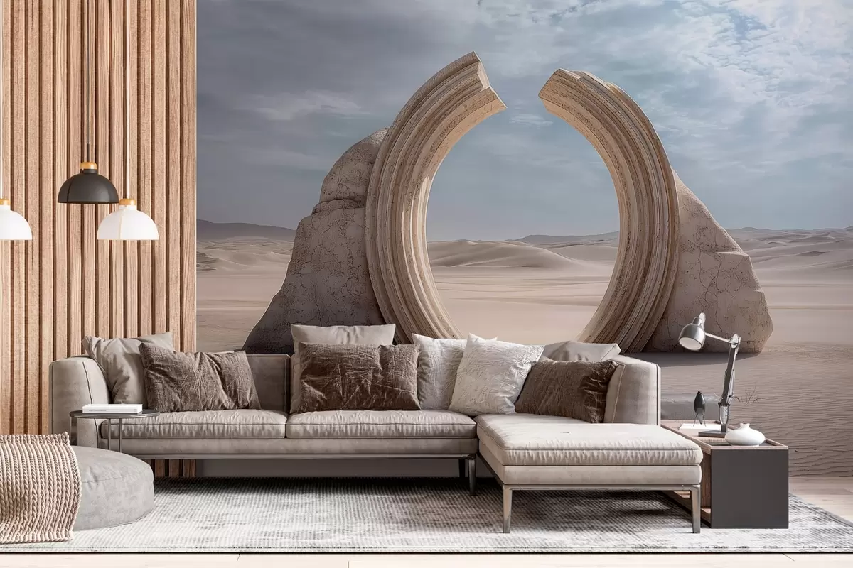 Wall murals surrealistic desert landscape with a large architectural arch Nr. w04284