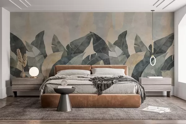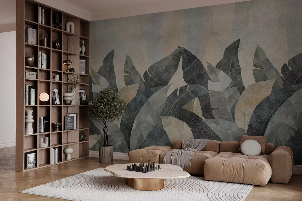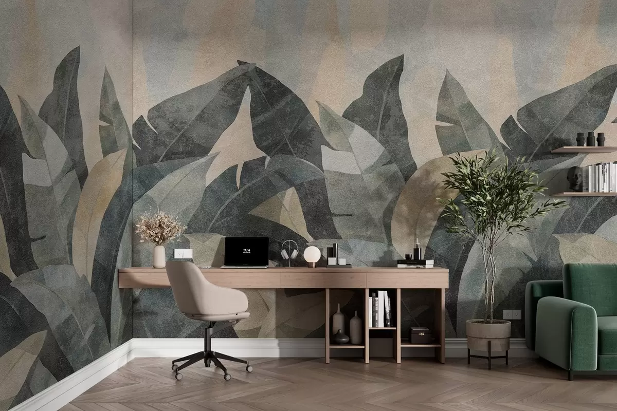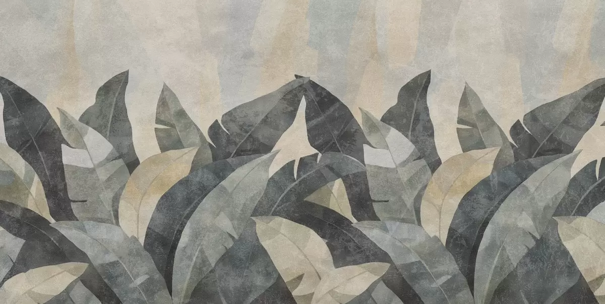 Wall murals textured banana leaves in natural shades of beige, green and gray Nr. w04285